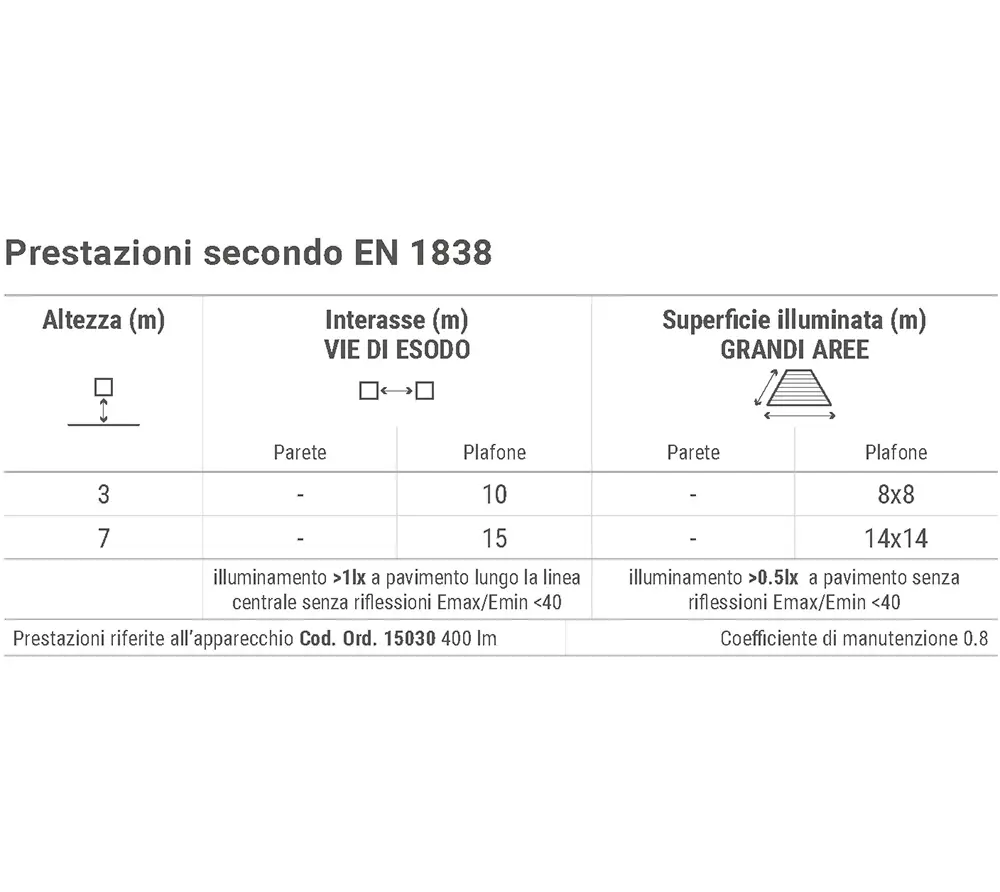 Incredibili prestazioni per l'illuminazione di emergenza a LED in ambito terziario e industriale. Con un flusso luminoso elevatissimo, controllato da una riflettore in alluminio antiabbagliamento a 4 celle, Acciaio Emergenza LED non teme confronti prestazioni.