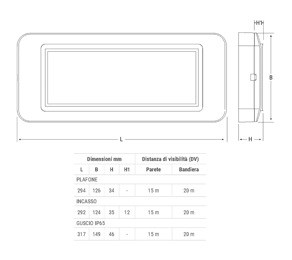 L’ampia dotazione di accessori consente di utilizzare un solo apparecchio per incasso, plafone, bandiera e cartongesso. Il Guscio IP66 totalmente trasparente, consente l’installazione in ambienti gravosi.