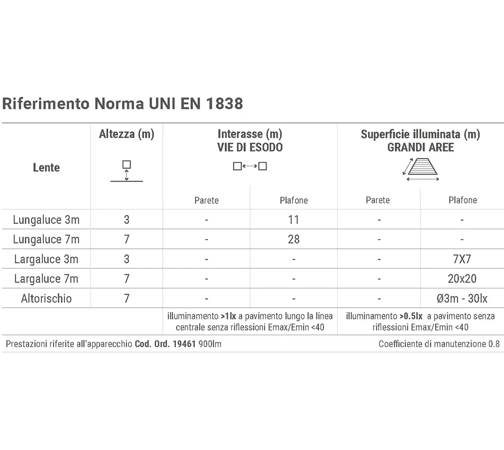 Sistema ottico con 5 lenti intercambiabili per adattare l’area di intervento all’esigenza sia per aree antipanico che vie di esodo.