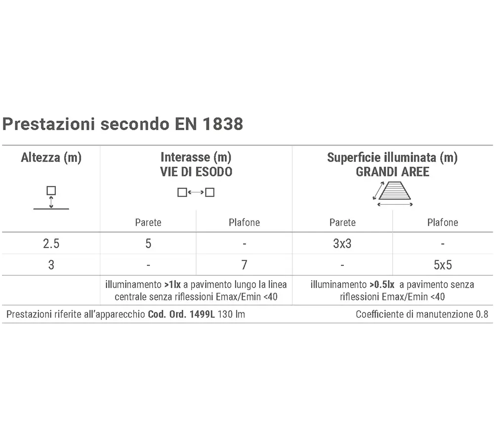 Apparecchio per illuminazione di emergenza, idoneo per installazione in ambito terziario. Ottica simmetrica per installazioni sia a plafone che a parete.