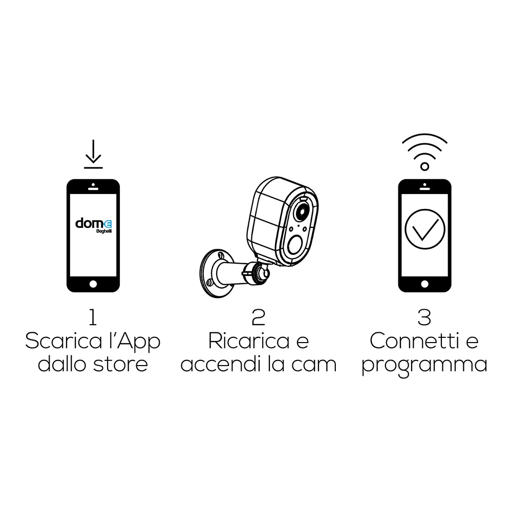 Controllabile con un semplice tocco tramite app Dom-e, permette di vedere in diretta i filmati e registrarli direttamente da smartphone. Compatibile con gli assistenti vocali Alexa e Google Home, il sistema è ideale per rendere la tua casa sempre più smart e sicura.
