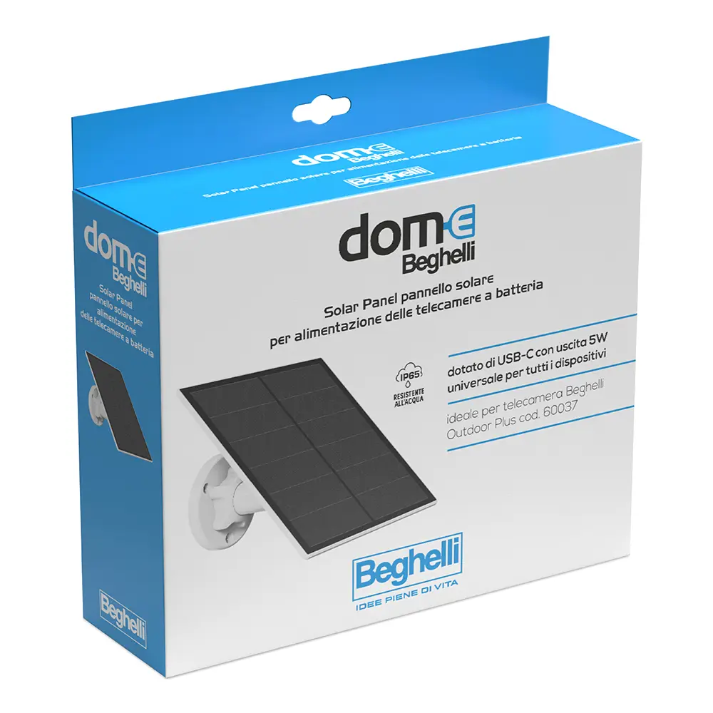 Pensato per offrire praticità e continuità energetica, Dom-e Solar Panel è ideale per le telecamere di sicurezza perchè eroga una potenza di 5W con tensione a 5V e corrente massima di 1A.
