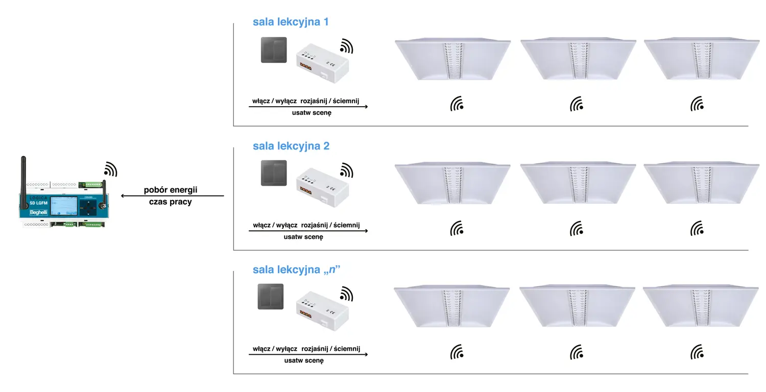 Tradycyjne systemy regulacji natężenia często wymagają dodatkowych przewodów sterujących, co generuje koszty i komplikacje podczas modernizacji istniejących obiektów. W szkołach i przedszkolach, gdzie inwestycje budżetowe są skrupulatnie analizowane, takie rozwiązania mogą stanowić barierę dla wdrożenia nowoczesnych technologii.