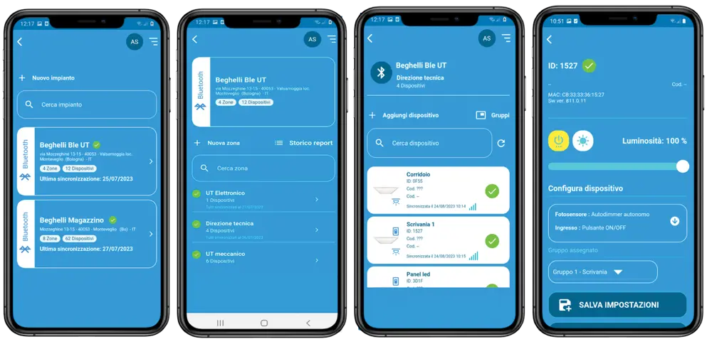 Aplikacja B.connect umożliwia lokalne sterowanie oprawami i dostęp do chmury NuBe Beghelli, gdzie można tworzyć nowe systemy i zarządzać już istniejącymi.