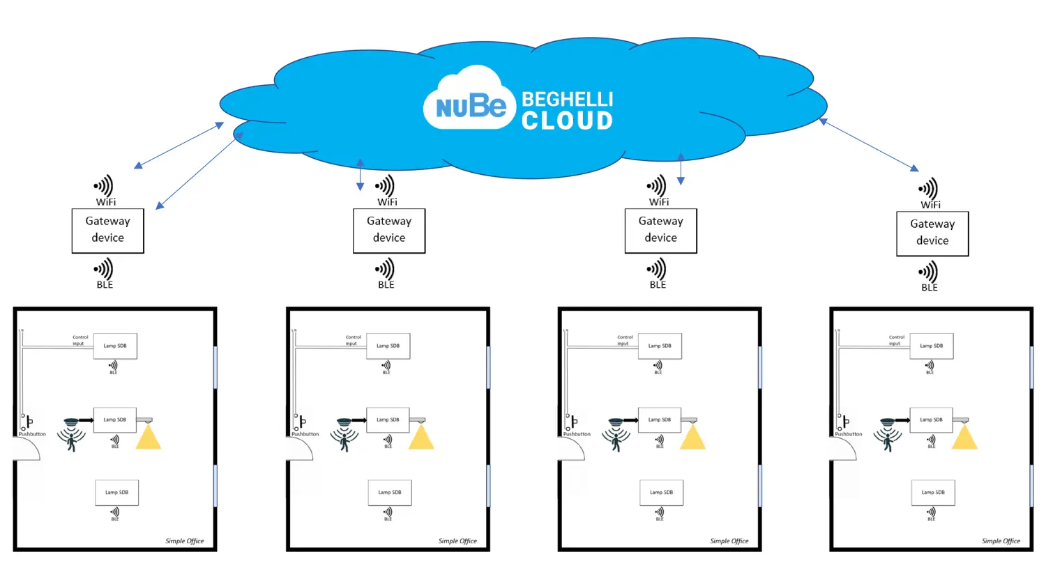 Takie rozwiązanie, połączone z usługą chmurową Beghelli NuBe Cloud, daje użytkownikowi możliwość tworzenia nieograniczonych systemów składających się z dowolnej liczby obiektów rozmieszczonych w różnych lokalizacjach na kuli ziemskiej.