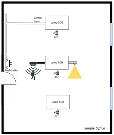 Do zarządzania oświetleniem można wykorzystać dedykowane fotosensory umożliwiające pracę opraw w systemie AutoDimm. Oprawy SDB można łączyć również z typowymi czujnikami ruchu, ogólnie dostępnymi na rynku. Wystarczy że jedna oprawa z całej grupy lub strefy jest podłączona do czujnika ruchu lub fotosensora a dane odebrane przez te czujniki zostaną w oprawie przetworzone i poprzez protokół Bluetooth automatycznie przesłane do opraw które zostały przypisane do danej grupy czy strefy (Schemat 2). Regulacja zostanie wykonana automatycznie i identycznie we wszystkich powiązanych programowo oprawach (nawet różnych typów).