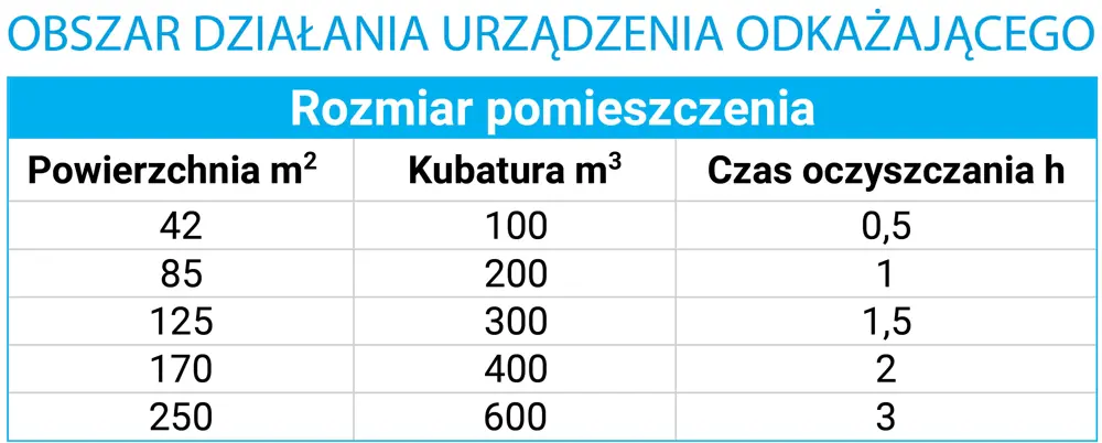 w odległości 1 m). Urządzenie zdolne jest do utrzymywania w każdych warunkach środowiskowych maksymalnej wydajności systemu. Możliwe jest to dzięki wyposażeniu lampy UV-C w czujnik, który automatycznie reguluje temperaturę.
