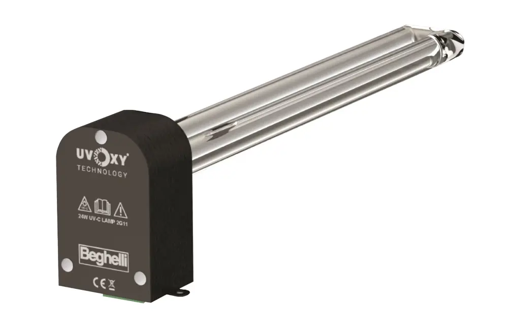 Źródło świtała UV-C jest w stanie napromieniować objętość oczyszczonego powietrza ilością energii wystarczającą do usunięcia z powietrza nawet 99,9% wirusów, bakterii i innych mikroorganizmów (testy przeprowadzone zgodnie z normą ISO15714). Efektywność eliminacji mikroorganizmów można zweryfikować sprawdzając procent redukcji w emitowanym przez urządzenie powietrzu. Więcej informacji: geltinternational.it/tecnal/beghelli