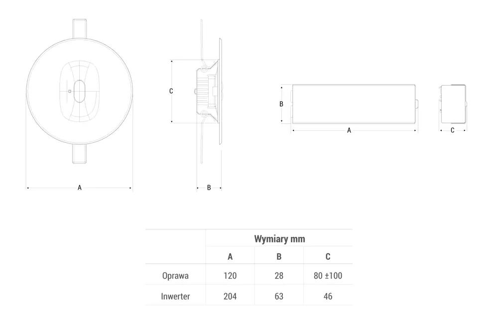 Wysokiej jakości oprawa oświetlenia awaryjnego. Subtelna i dyskretna oprawa o grubości zaledwie kilku milimetrów dopasowuje się do każdego wnętrza. Dostarczana w komplecie z zestawem soczewek pozwalających kształtować krzywą rozsyłu światła w zależności od potrzeb. Soczewki wykonane są z wysokotransparentnego PMMA. Dzięki nim można otrzymać rozsył korytarzowy (Lungaluce) oraz rozsył szerokokątny (Largaluce). Oprawa wyposażona jest w jedną diodę o wysokiej sprawności zabudowaną w grafitowym radiatorze dla optymalnego odprowadzenia ciepła. Ta unikalna oprawa służy do oświetlenia dróg ewakuacyjnych do ponad 17m oraz stref otwartych do 130m² (oświetlenie antypaniczne). Oprawa ma regulowany czas autonomii od 1 do 8 godz.Oprawę wyróżnia niezwykle szybki montaż, dzięki stalowym sprężynom, które umożliwiają manewrowanie oprawą nawet po zamontowaniu. Otwór montażu to tylko ø 80÷100 mm.