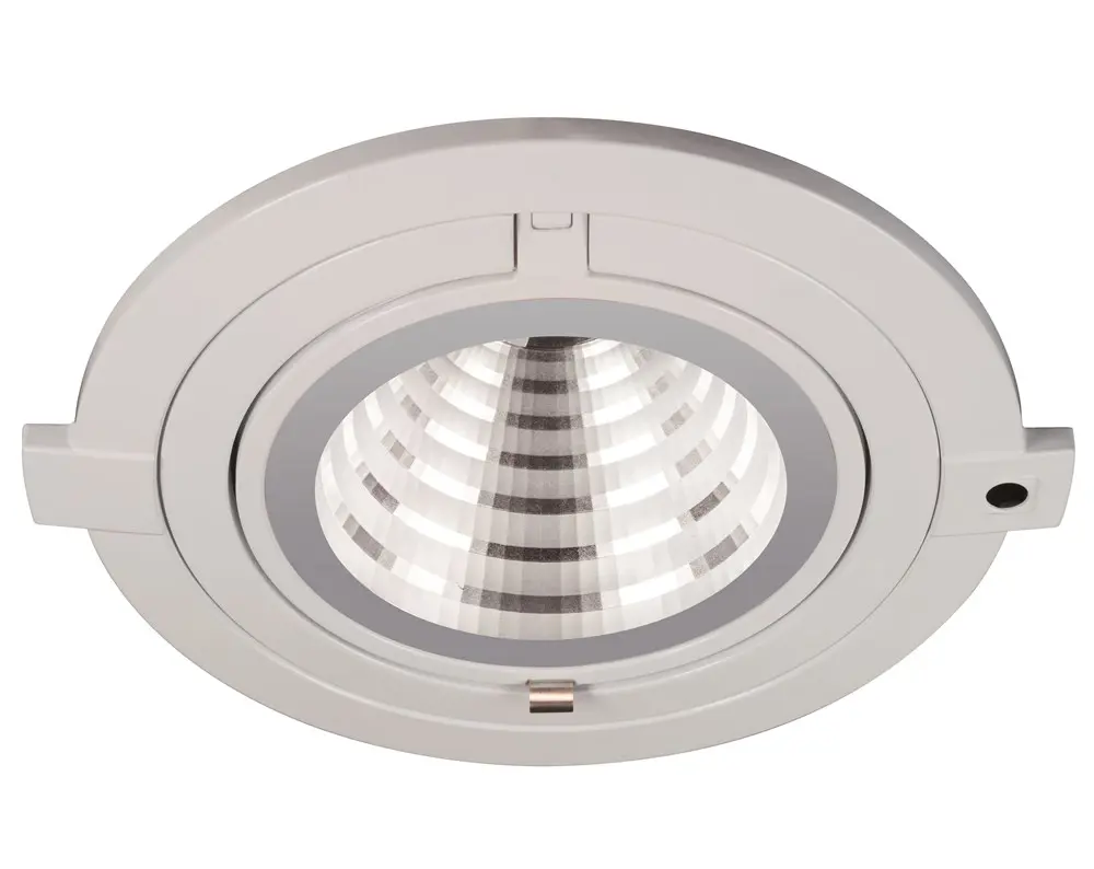 Oprawy D170/1150 LED wykonane są z ciśnieniowego odlewu aluminium, lakierowanego proszkowo na kolor biały. Układ zasilający znajduje się w odrębnej obudowie. Zwiększa możliwości montażowe oprawy oraz daje możliwość lepszego odprowadzenia ciepła. W oprawach zastosowano biały odbłyśnik o wysokim współczynniku odbicia oraz klosz wykonany ze szkła hartowanego. Regulowany zespół optyczny pozwala na obrót oprawy o 345° oraz wychylenie o 60°. W ramce oprawy możliwy jest montaż dodatkowego źródła światła LED o mocy 1W (zespół optyczny soczewkowy), które zostanie włączone w przypadku awarii zasilania lub jako oświetlenie nocne. Oprawy zostały zaprojektowane jako oświetlenie akcentujące, przeznaczone do przestrzeni sklepowych. Takie przeznaczenie opraw wyklucza zastosowanie opcji automatycznego ściemniania (AutoDimmer Sensor).