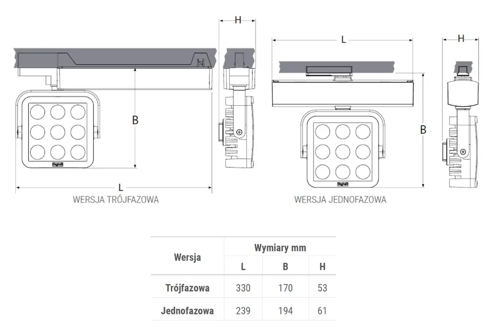 Dostarczany wraz z oprawą adapter umożliwia korzystanie z większości szynoprzewodów trójfazowych dostępnych na rynku.