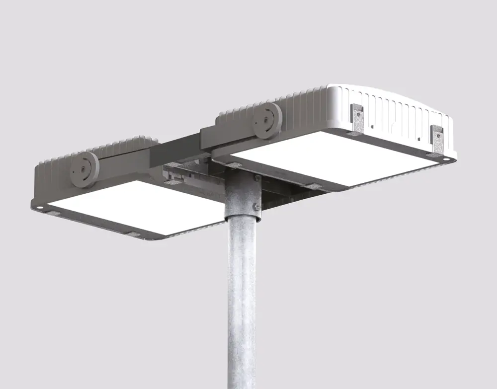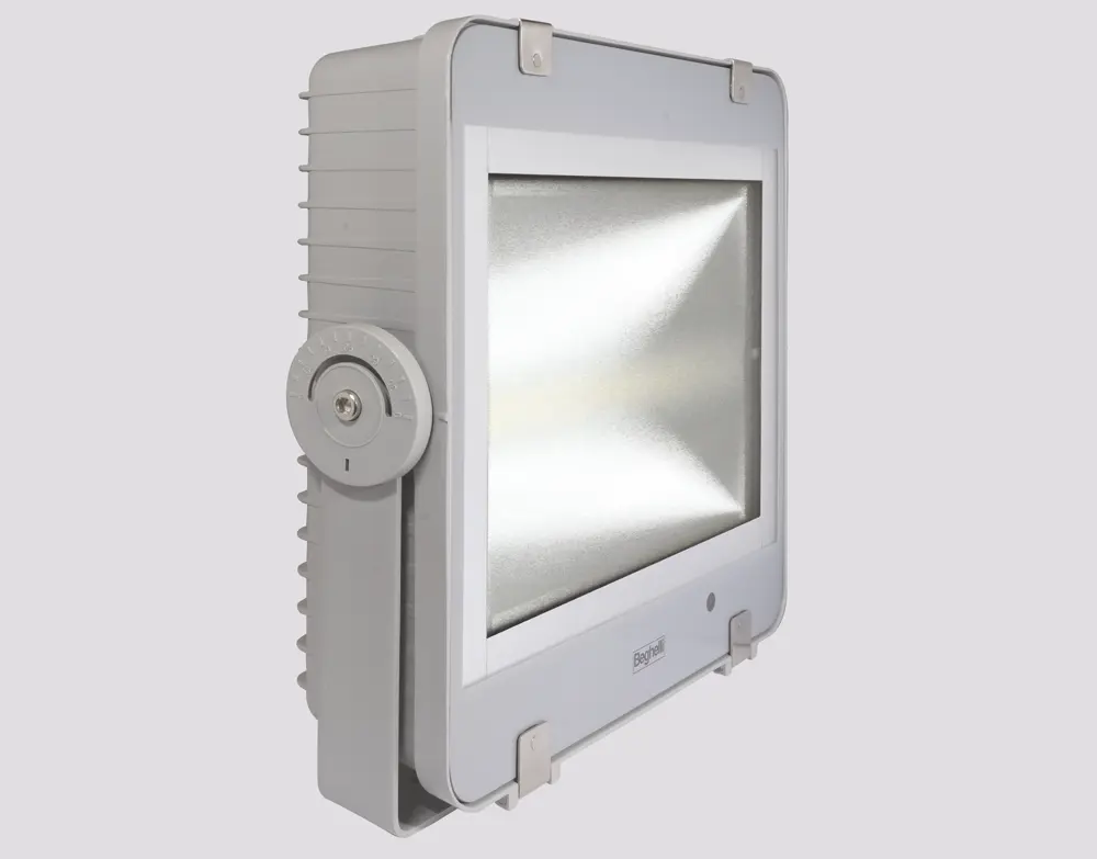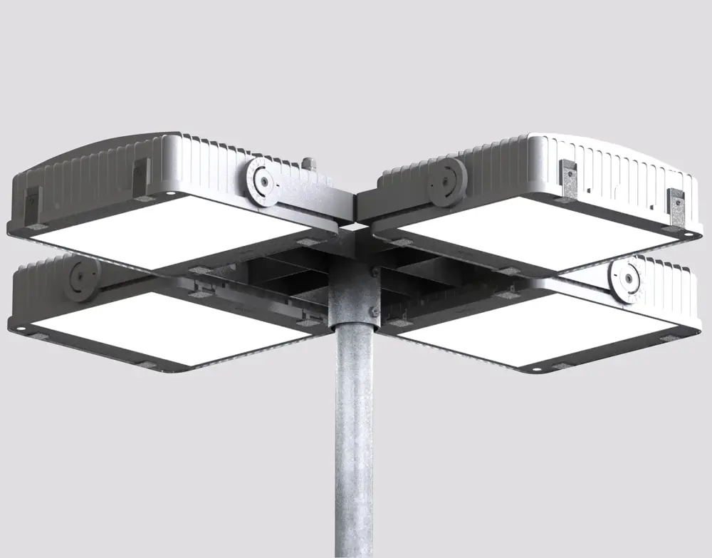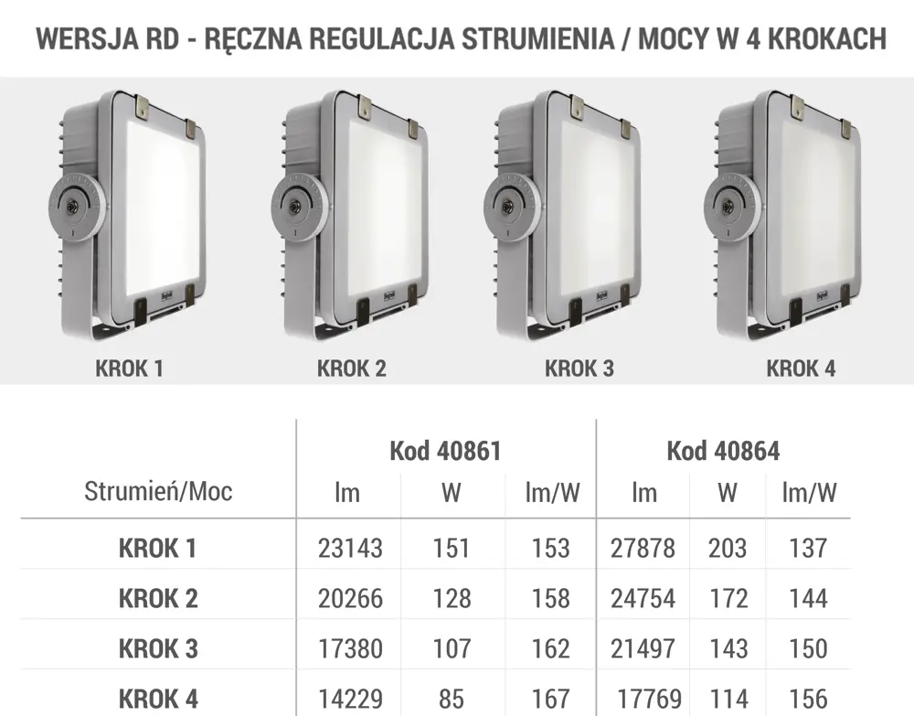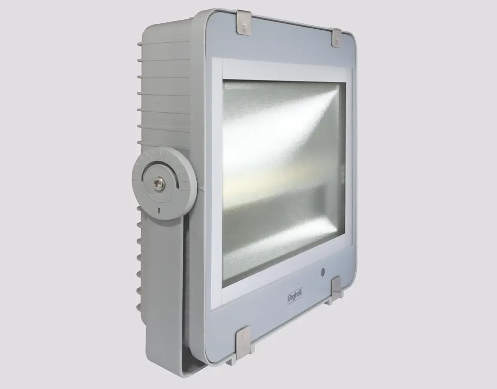 Naświetlacz zewnętrzny z uchwytem goniometrycznym, którego strumień świetlny dochodzi do 32 000 lm. Oprawa w wersji SD, wyposażona jest w fotosensor Opticom, który pozwala na w pełni automatyczną regulację strumienia świetlnego oprawy w zależności od ilości światła dziennego docierającego do powierzchni roboczej. Funkcja automatycznego ściemniania, sterowana jest za pomocą jednostki centralnej lub systemu RD. Urządzenie w wersji RD posiada 4 - stopniową ręczną regulację strumienia świetlnego, dopasowując moc świetlną do wymaganych warunków. Dostęp do przełączników jest łatwy i odbywa się poprzez odchylenie klosza, który jest integralną częścią układu optycznego. Doskonałe parametry techniczne umożliwiają montaż oprawy w trudnych warunkach zewnętrznych lub przemysłowych. Podwójna aluminiowa oprawa typu high by posiada dwa rodzaje rozsyłu: asymetryczny, symetryczny (po zdjęciu deflektora).