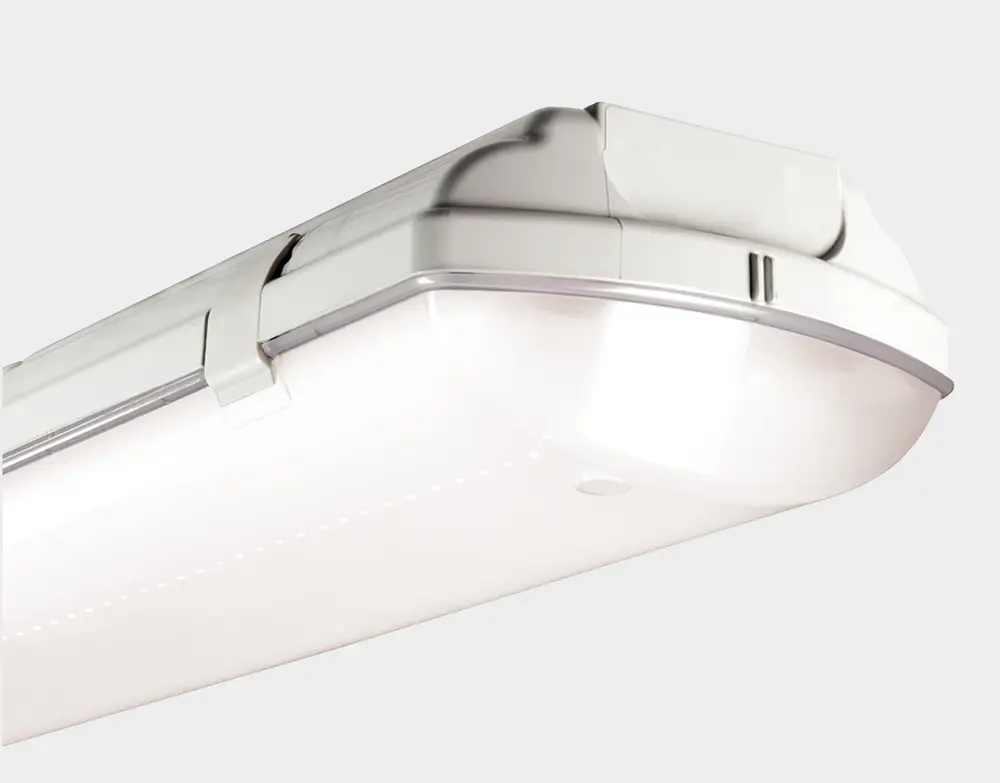BS100 LED to profesjonalne oprawy o zaawansowanym systemie przeciwolśnieniowym i wysokim strumieniu świetlnym, np. strumień świetlny w wersji High Output (HO) wynosi aż 15 800 lm. Obudowa wykonana jest z samogasnącego poliwęglanu, stabilizowana promieniami UV. Klosz posiada mikropryzmatyczną strukturę mającą za zadanie optymalny rozsył światła, przy jednoczesnym ograniczeniu olśnienia jakie towarzyszy diodom o wysokiej skuteczności świetlnej. Uszczelka wykonana jest z pianki poliuretanowej, odpornej na starzenie się a klipsy z technopolimeru nadają oprawie trwały oraz wytrzymały charakter. Oprawę hermetyczną wyróżnia stopień ochrony IP65. Jest ona odporna na wszelkiego rodzaju pyły oraz wodę, co jest szczególnie ważne w środowiskach przemysłowych. Zaawansowane parametry oraz specjalistyczne wykończenie pozwalają na montaż oprawy nawet w najbardziej wymagających przestrzeniach – takich, jak magazyny, fabryki czy hale basenowe. Wśród opraw BS 100 LED dostępna jest też specjalna wersja przystosowana do wykorzystania na parkingach. Została zaprojektowana tak, aby dostosować się do warunków podziemnych, które wymagają intensywnego oświetlenia na dużym obszarze, ale jednocześnie z mocno zredukowaną wysokością montażu.