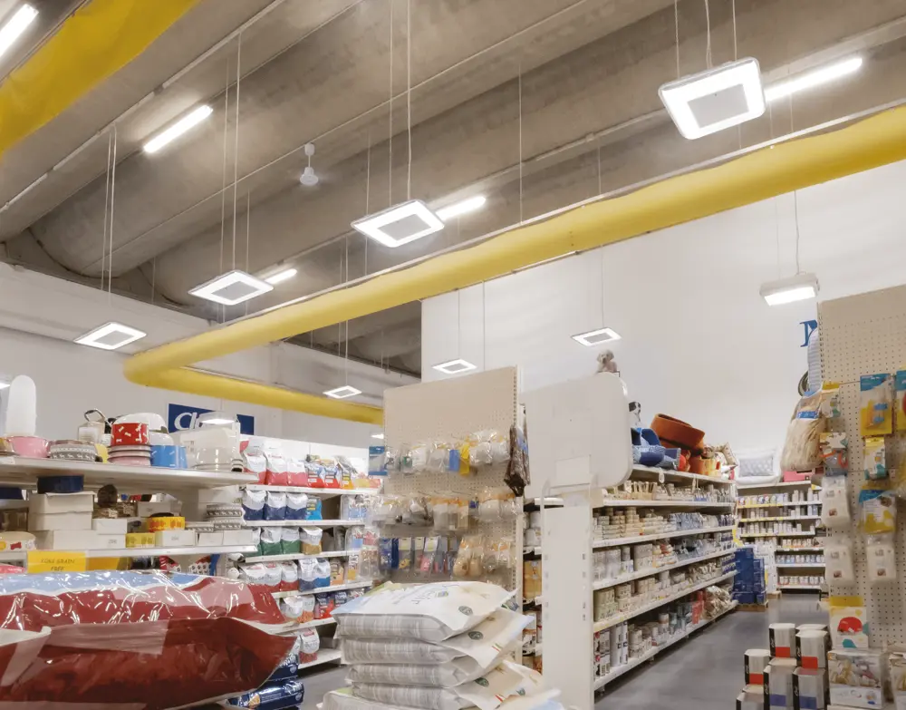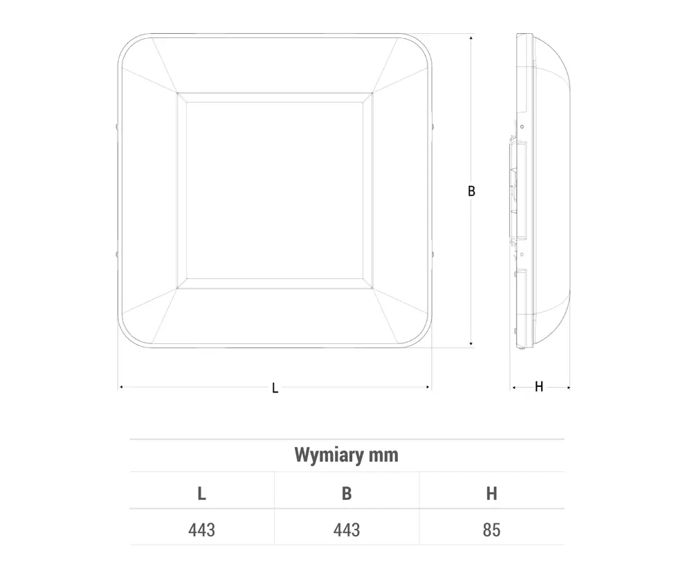 Czterostronny, symetryczny i szeroki rozsył światła oprawy, sprawia, że idealnie nadaje się do obiektów z niskimi, obniżonymi sufitami, jak parkingi podziemne. Oprawa została zaprojektowana tak, aby dostosować się do warunków podziemnych, które wymagają intensywnego oświetlenia na dużym obszarze, ale jednocześnie z mocno zredukowaną wysokością montażu.